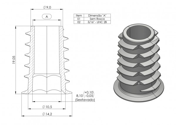 BUCHA ZAMAC M6 x 13mm